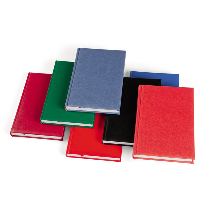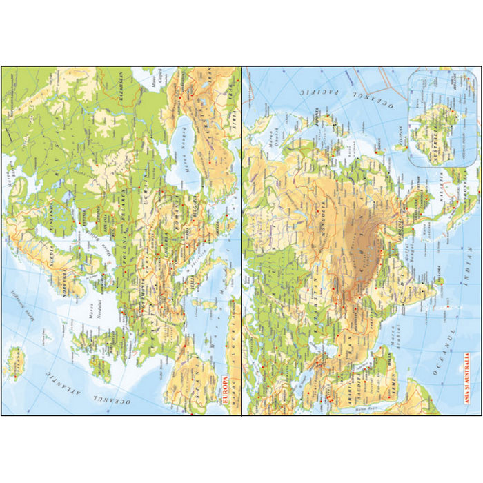 Agenda datata zilnica A5 (14 x 20.5cm) cu 360 de pagini (352 si 8 atlas). Hartie offset, alba, 70g/mp. Imprimare: forzat alb, 2 culori (rosu, gri). Atlas 8 pagini policromie. Finisare: cusuta, legata. Coperti buretate, semn de carte rosu, banda capital rosie.