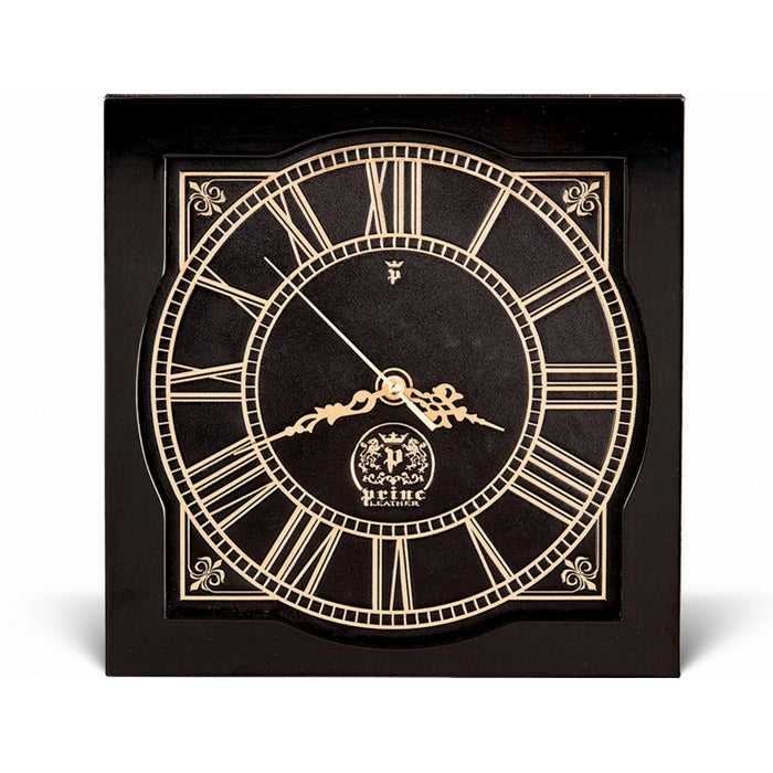 realizat manual din piele tabacita si colorata vegetal pe suport de lemn, mecanismul precis al ceasului este fabricat din cuart și functioneaza cu o baterie alcalina AA, modern și elegant, acest model de ceas de perete este realizat în doua culori: maro si negru