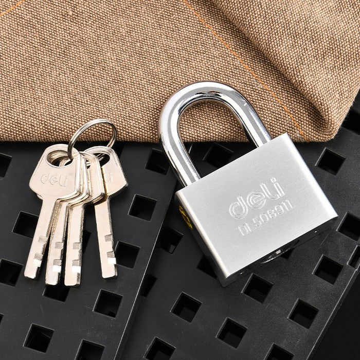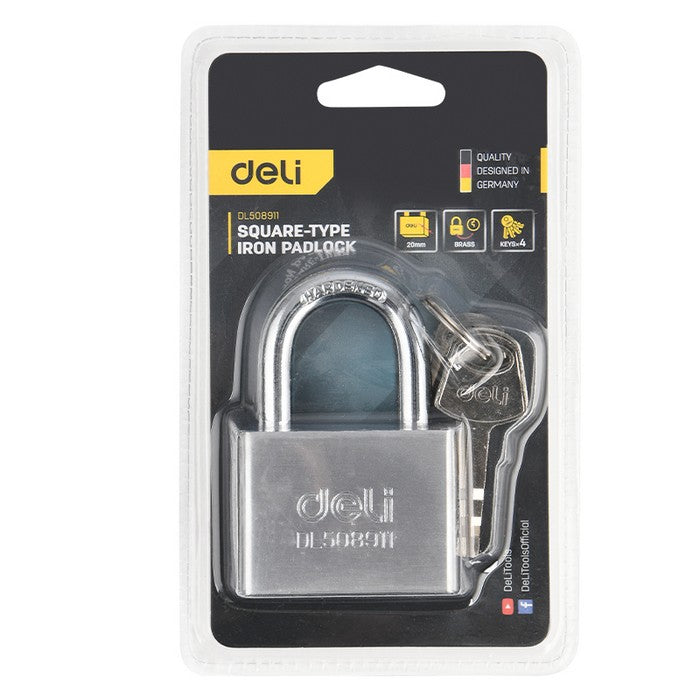 Lacat patrat Deli, realizat din fier cu miez solid din cupru, rezistent la coroziune. Lacatul se vinde impreuna cu 4 chei. Latime corp lacat de 50 mm, ideala pentru porți, dulapuri, dulapuri și cutii de scule.
