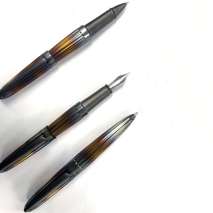 corp din aluminiu, finisaje cromate mat, striatii pe toata suprafata corpului, Aero este fabricat din aluminiu anodizat (strat subtire de oxid de aluminiu si ofera rezistenta mare la lumina si raze uv).
