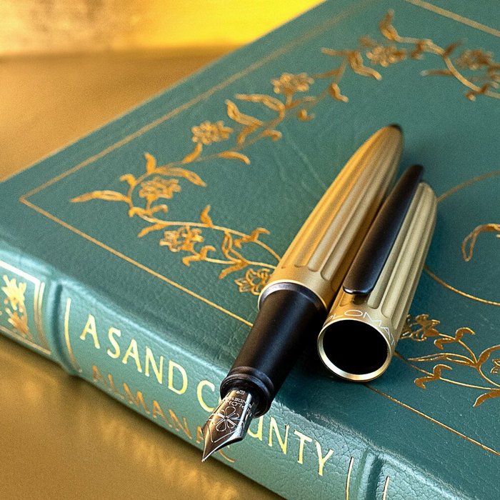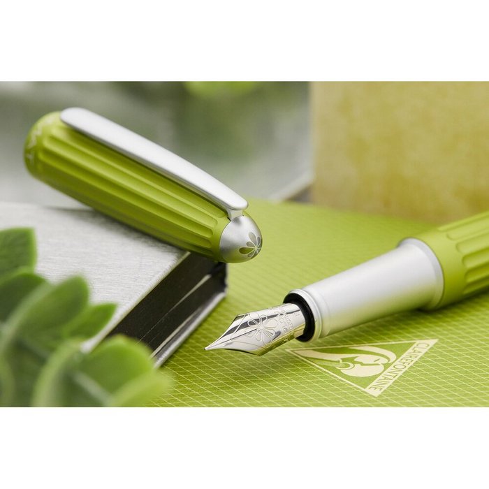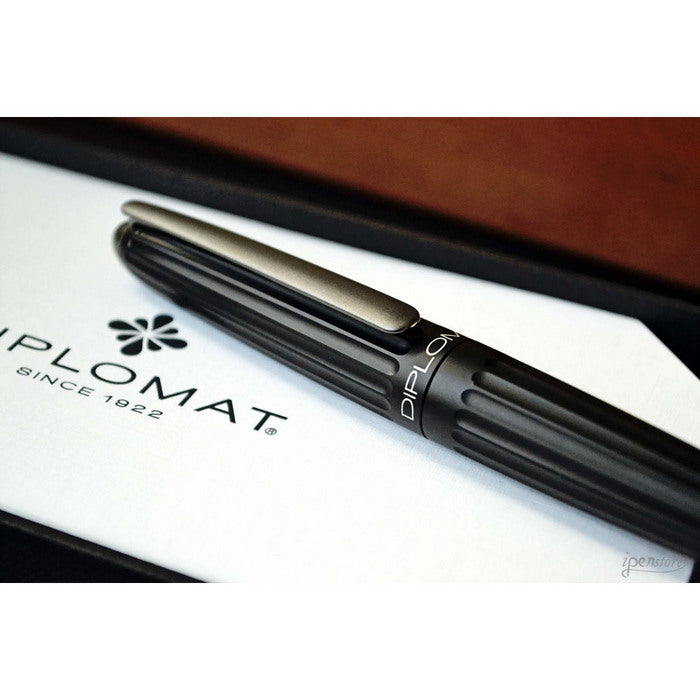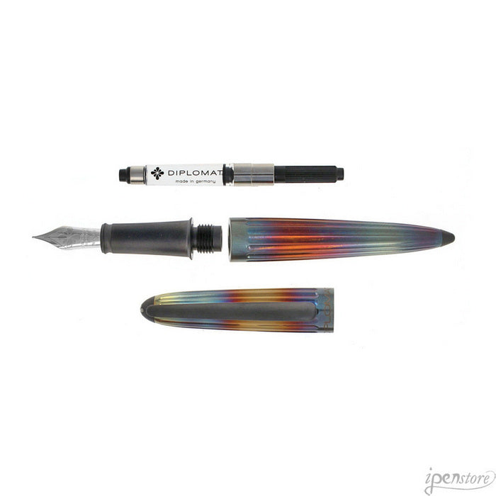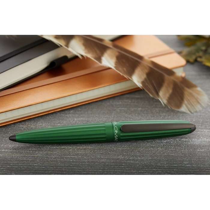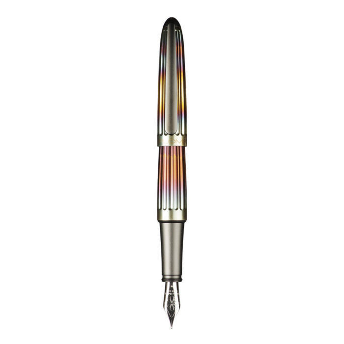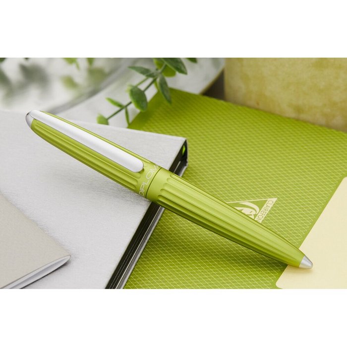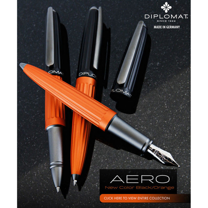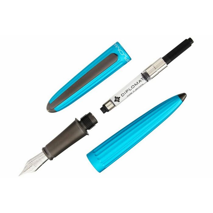 corp din aluminiu cu finisaje cromate, Aero este fabricat din aluminiu anodizat (strat subtire de oxid de aluminiu care subliniaza natura metalica si ofera rezistenta mare la lumina si raze uv), functioneaza pe baza de cartuse standard de cerneala sau cu convertor (ambele incluse).