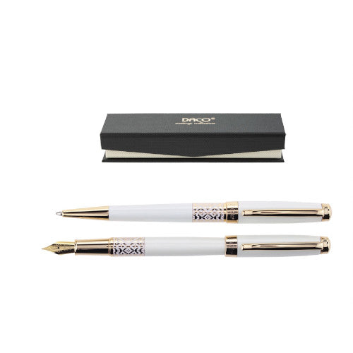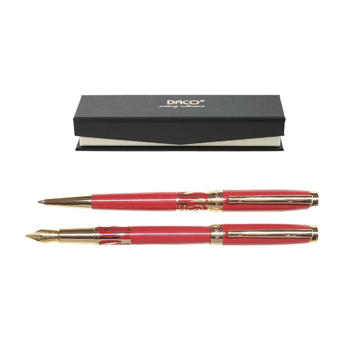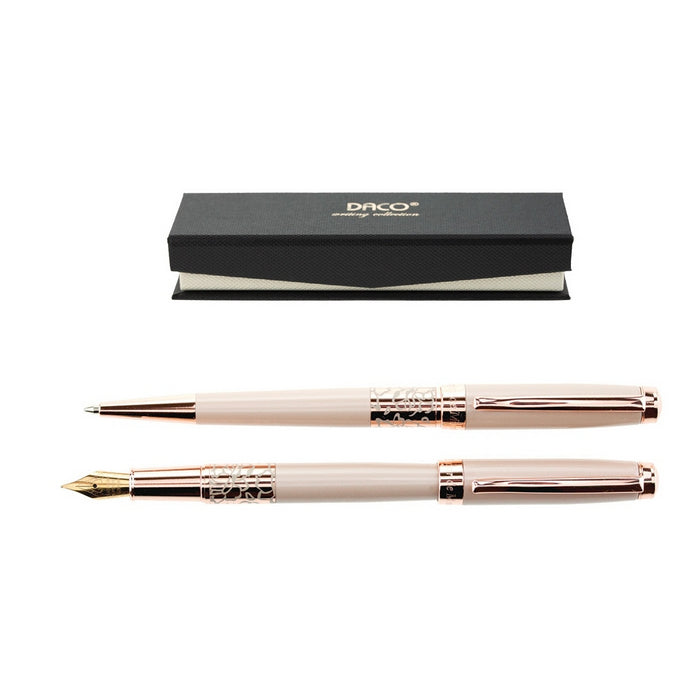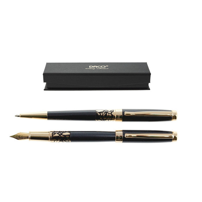 corp metalic cu accesorii metalice, stilou cu patron, penita iridium, pix cu mina tip Parker